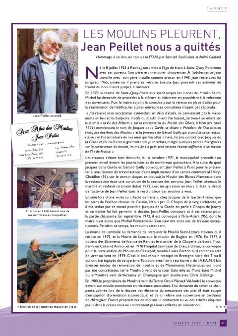 Article extrait du n° 91 (juillet 2012) de la revue de la FFAM, Moulins de France (crédits photos FFAM), avec autorisation de la Fédération Française des Associations de sauvegarde des Moulins www.moulinsdefrance.org