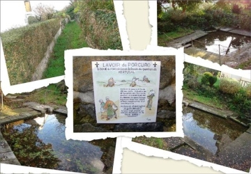 Nouvelles photos d'Hélène GUEGAN du lavoir de PORCURO en 2012, après un nouveau nettoyage et fixation de la plaque signalétique offerte lors de la fête du moulin 2011.