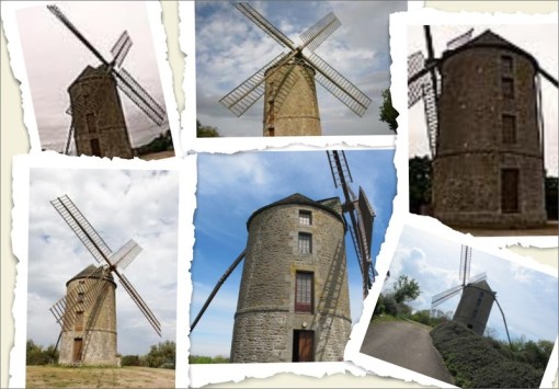 Ce moulin-tour élancé, à quatre niveaux, en moellons et ciment, couvert d'ardoise, a continuellement servi de moulin à farine. Les ailes à traverse, imitées de celles qui étaient à l'état primitif,